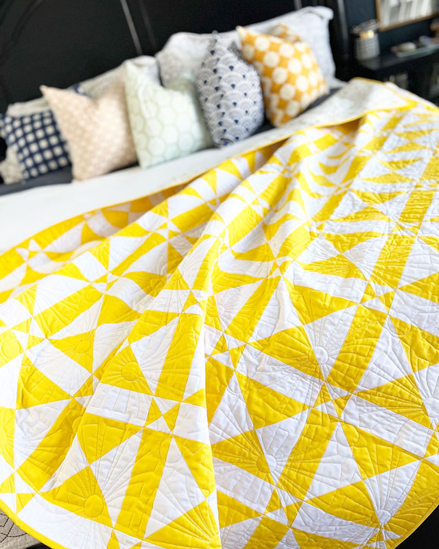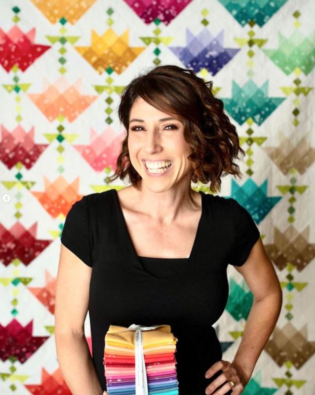 Radiating Confidence Block 18 is big, bold, and bursting with energy. Made from half-square triangles , quarter-square triangles , and split-square units , this block is a swirling starburst that radiates from the center and anchors its section with dramatic movement. The soft ballet pink, crisp...