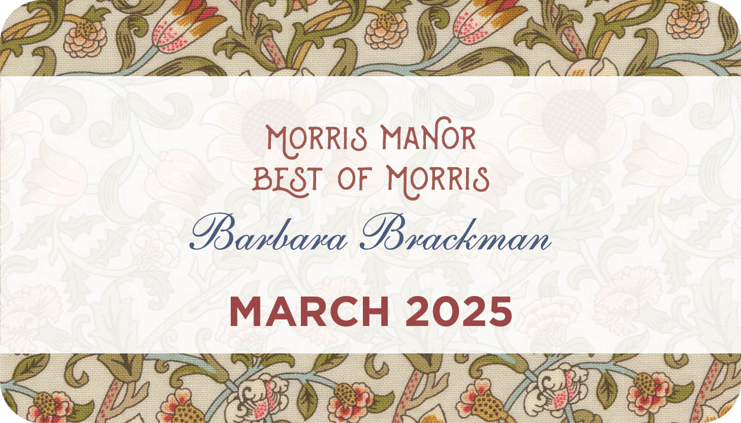 She’s been designing fabric for Moda for thirty years, specializing in reproduction prints, particularly William Morris repros with an Arts & Crafts flair. She’s currently working on another “Best of Morris” collection reflecting the 19th-century designer’s view of the English meadow ground with flowers large and small and a palette derived from natural shades.