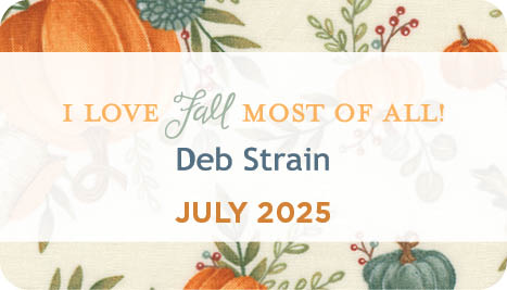 A design for Moda Fabrics since 1996, Deb feels honored to have watched Moda’s growth and success over the years. “Moda’s integrity and genuine caring about quilters, the quilting industry and their designers has always been part of why I love working with this wonderful company. That and the “best in the business” members of the Moda family have made it an incredible journey.”