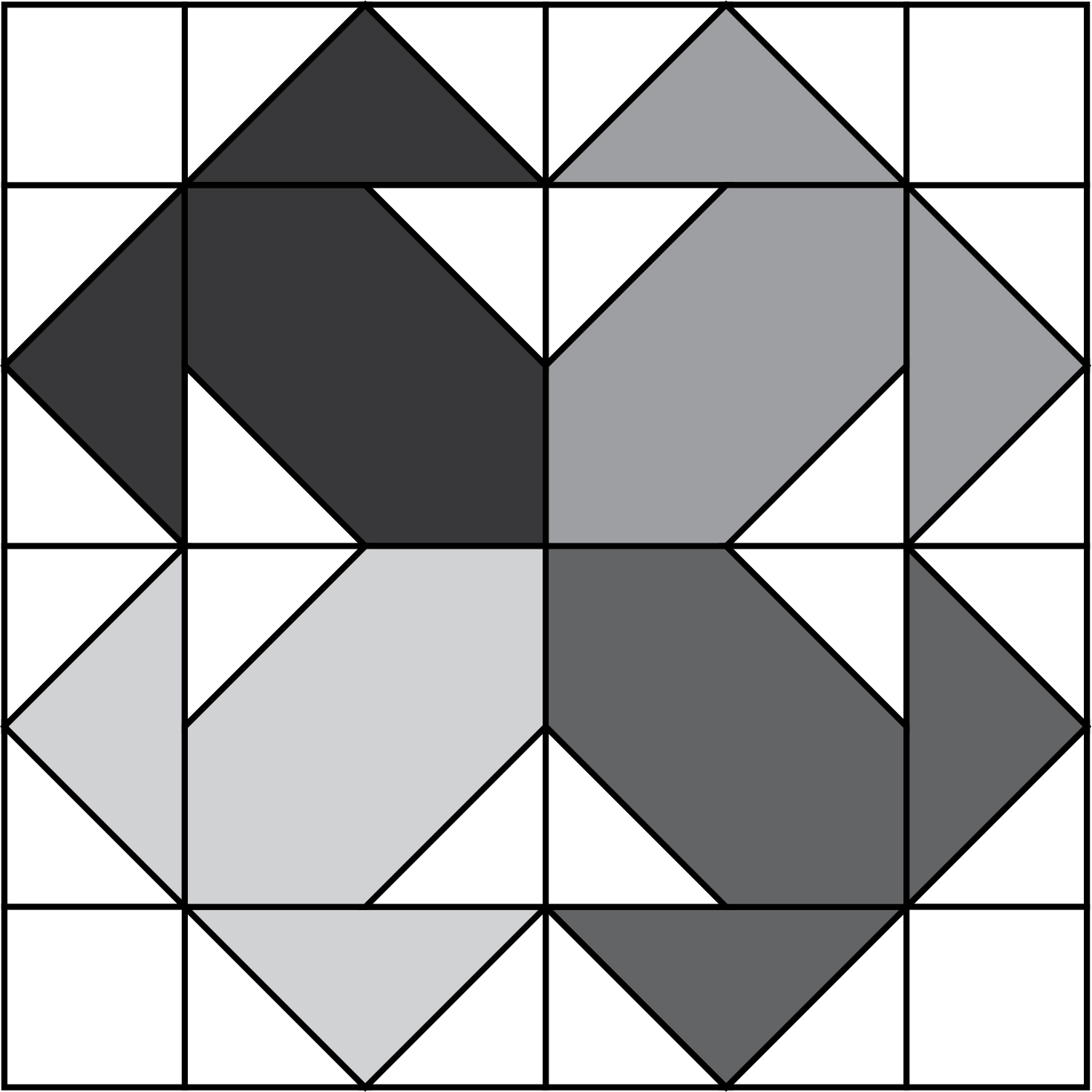 - Make four of these center units (one for each quadrant) and square them up before moving on.