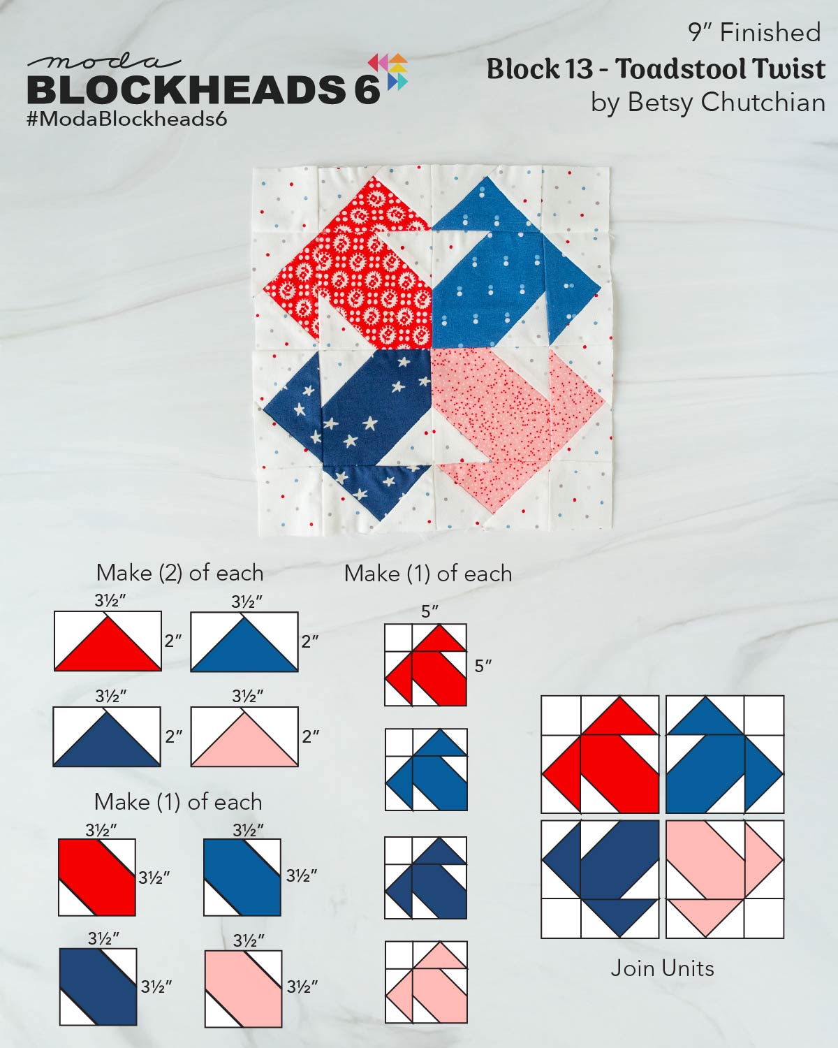 Be sure to watch Lissa’s full video tutorial below for close-up demonstrations of the stitch-and-flip geese, trimming, and assembly. Download the Toadstool Twist pattern from the link in the description or on the Blockheads blog, and when you’re finished, share your block in the Moda Blockheads Facebook group — we love seeing everyone’s color choices and variations!