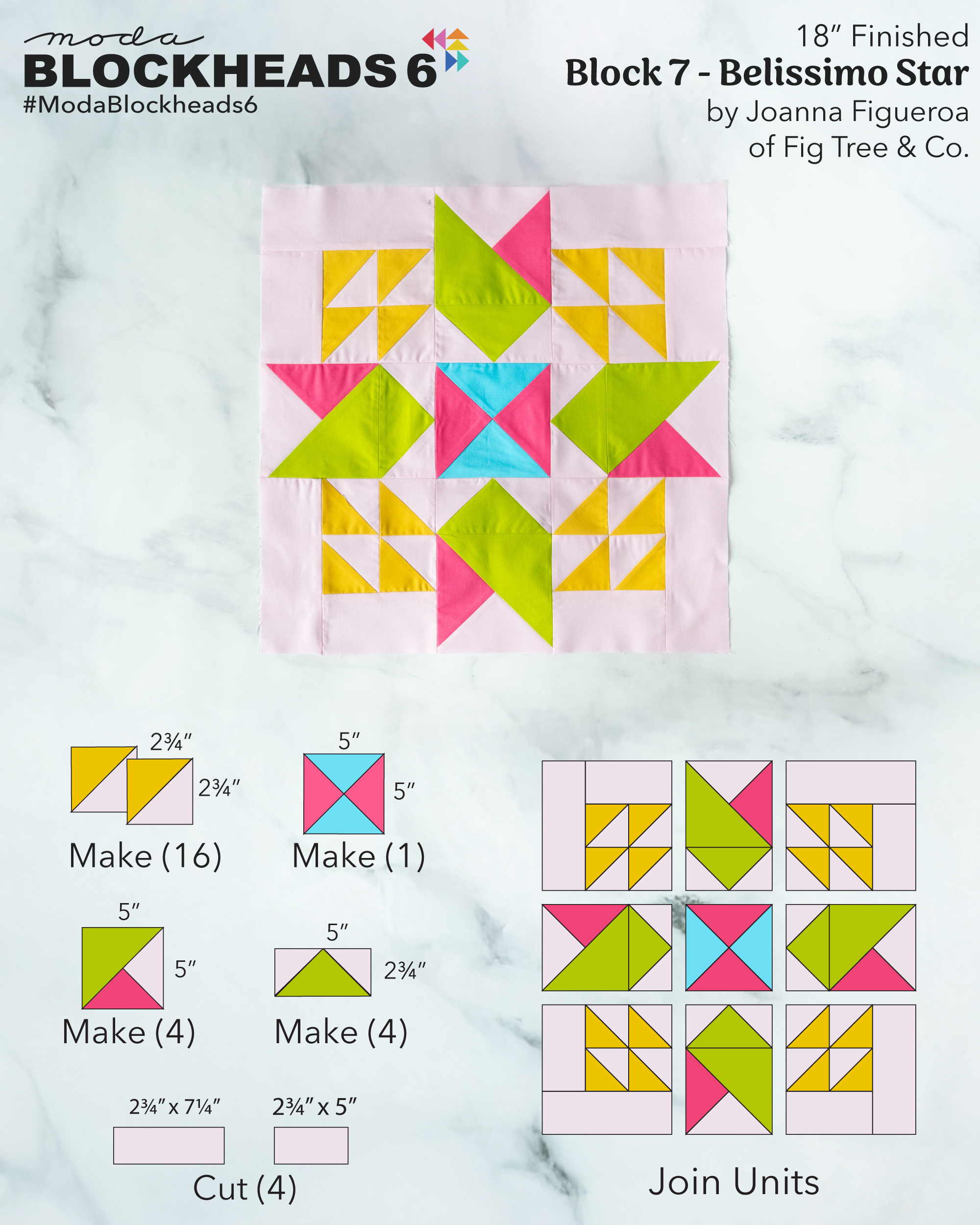 We love seeing your Blockheads journey! Share your Bellissimo Star on social media using the hashtag #modablockheads6, and be sure to tag @modafabrics and @figtreeandco too. And if you haven’t already, join our free Moda Blockheads Facebook group to quilt along with thousands of fellow makers.