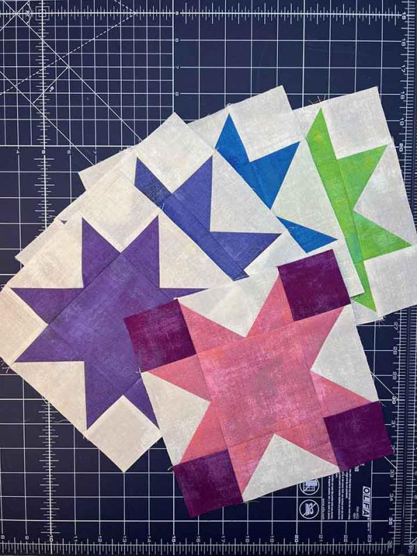 This month is focused on making 5 differently colored Variable Star blocks. It's a great opportunity to perfect your piecing techniques.