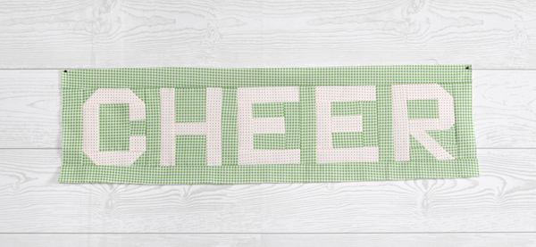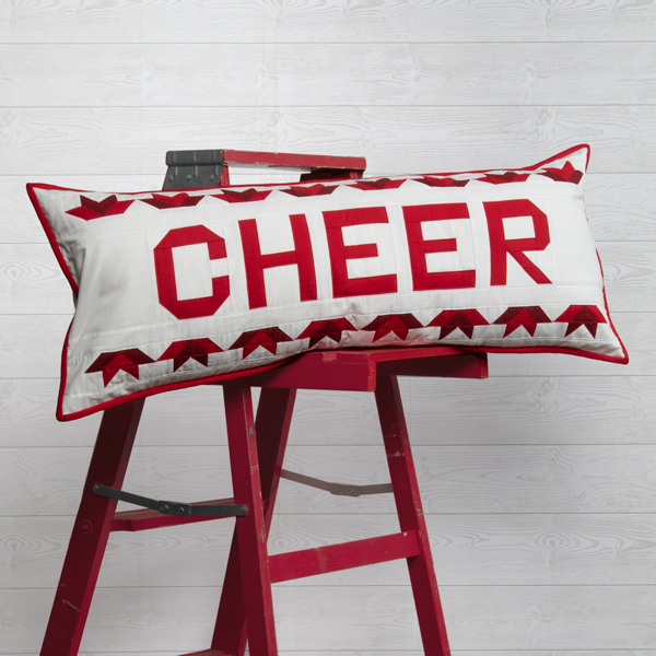 The bonus project for this month is this super CHEER-ful pillow! Not only would it make a festive addition to your pillows during the holidays, but a couple people in the Moda offices couldn't help but think it would make a great gift for any cheerleaders in the family, with the right color changes!