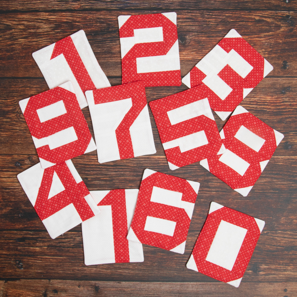 Whether you're making the letters banner from our July post, or maybe had Miracle on 34th Street to add to your Christmas Movies quilt, you may be looking for numbers to fit with the Mini Alphabet lettering. Well you're in luck! Moda's Tammy V. did all the math for us, and you can download the numbers instructions here.