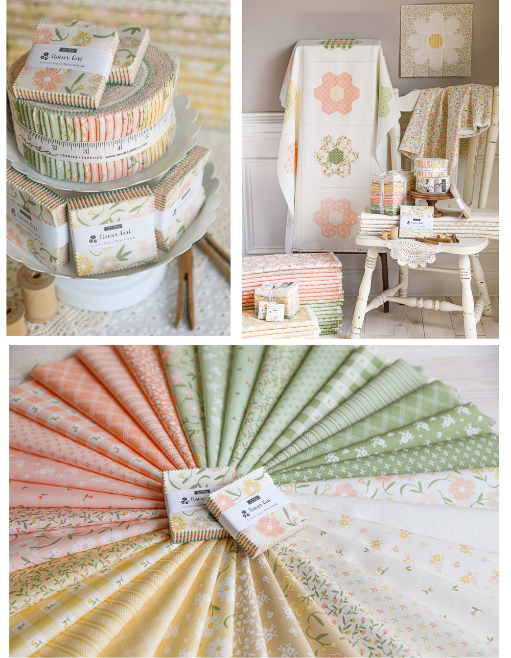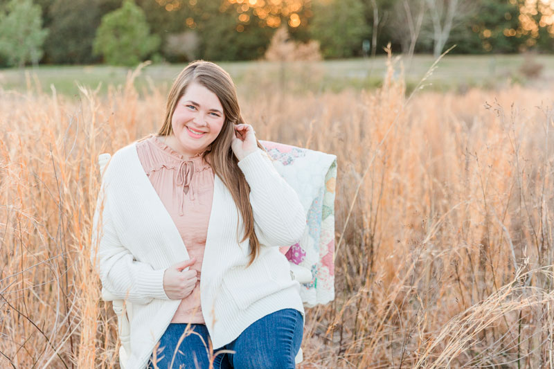 I am inspired by nature and have become obsessed with designing floral quilts. Some people even call me “the flower quilt queen.” I’ll take it! My style is traditional with a modern touch. It’s no surprise when I began designing fabrics that I wanted to design floral fabrics that were soft, sweet, and feminine to go with my floral quilt designs.