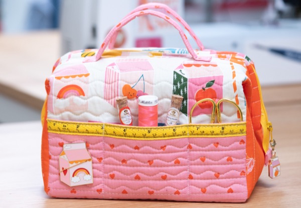 One of our favorites is the Stylish Sewing Caddy and Stylish Sewing Tote with the wire mouth that opens wide—it's like a little whale ready to suck up all your sewing supplies and fabrics to take with you on the go! Juicy by Melody Miller is just one of the fabric collection used here. We wont be able to make just one!