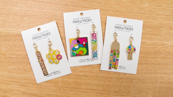 Cathe Holden also has a line of SewMod zipper pulls that are so colorful and fun, perfect for adding a bit of bling to any project. There are also several adorable characters and designs, even some patriotic themes. There is a wide range that covers almost any interest out there and your customers will just love them!