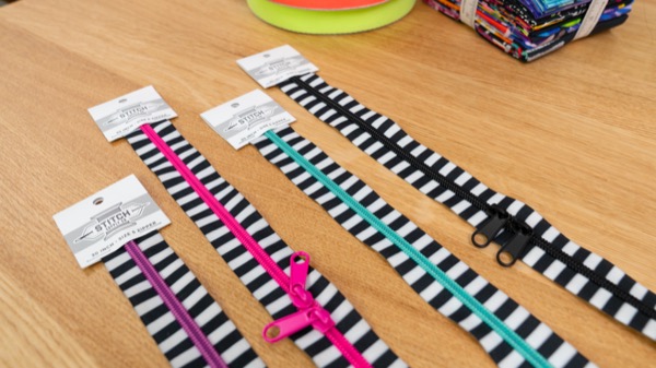 We just love Stitch Supply's new zippers as well! They have that black and white mixed with bright color feel we just love! They will work wonderfully is so many projects!