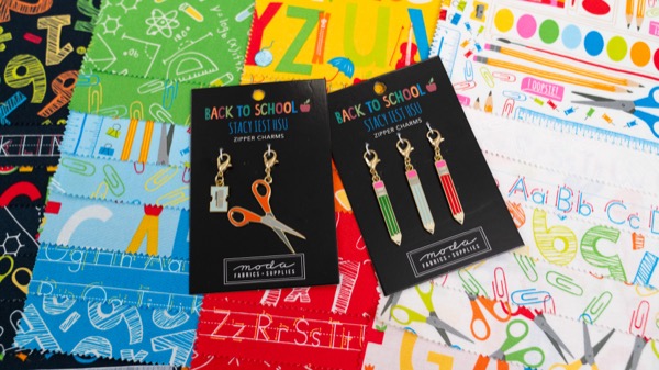 Perfect for back-to-school, Stacy has dazzled us with a new range of zipper pulls, project panels, patterns, ribbons and coordinating fabrics with her Back to School collection. Imagine all the fun you could have with such a cohesive group. The possibilities are endless and we love them all!