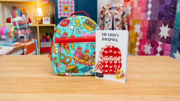 Let's kick things off with this adorable backpack from Knot and Thread Designs. They offer a ton of cute bag patterns, but we're currently obsessed with the Violet Backpack. We made ours using the new Snack Shack line by Crystal Manning—it's such a perfect and cute fit for this project.
