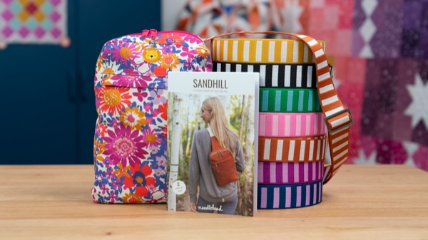 Another Noodlehead pattern we love is the Sandhill Sling. It can be worn as a regular backpack or as a crossbody fanny pack. We've paired it with the new Stitch Supply webbing, and it's just adorable.