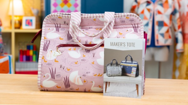 The Makers Tote is just lovely. It's really spacious with plenty of pockets inside, making it both practical and stylish. We used fabric from Lizzie House’s new Love Letter collection for our sample! Annie got a chance to interview Lizzie on her return to fabric and it was such a fun conversation, we are so glad she is back and partnering with Moda! Love Letter fabric IN STORES January 2025. The swan zipper pull from Cathe Holden's brand-new Sable and Swan collection happens to match this fabric, so we couldn't resist adding it.