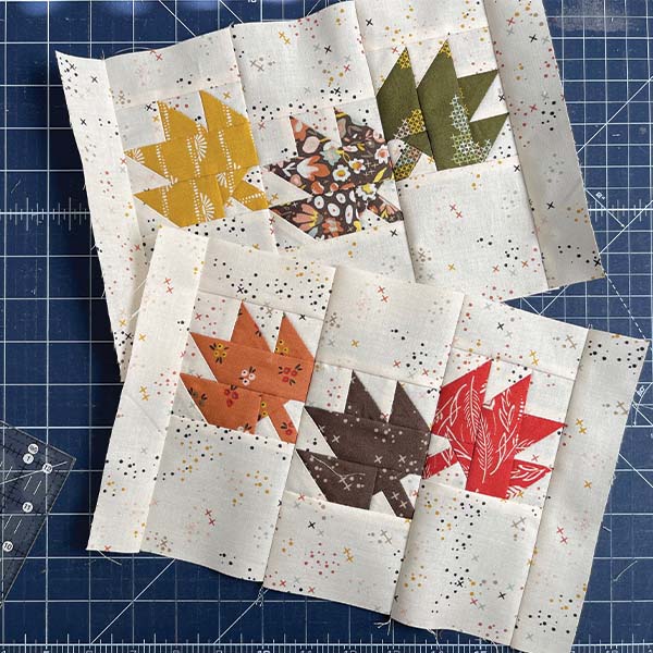 Then sew the leaf units together in rows to complete the block. Make 6 blocks.