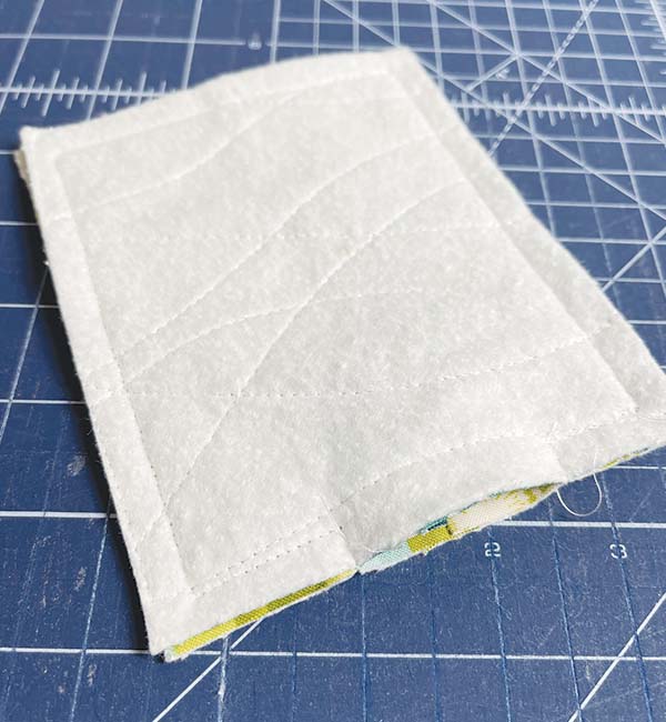 Quilt both the front and back and trim to size as indicated in the pattern.
