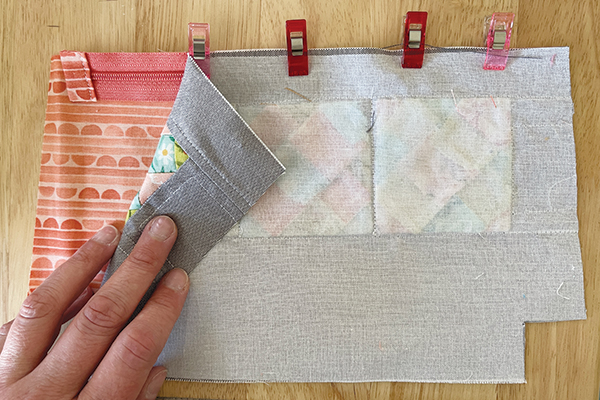 And then follow the directions in the pattern to shape the pouch by trimming the bottom corners and sides of the exterior and lining pieces.