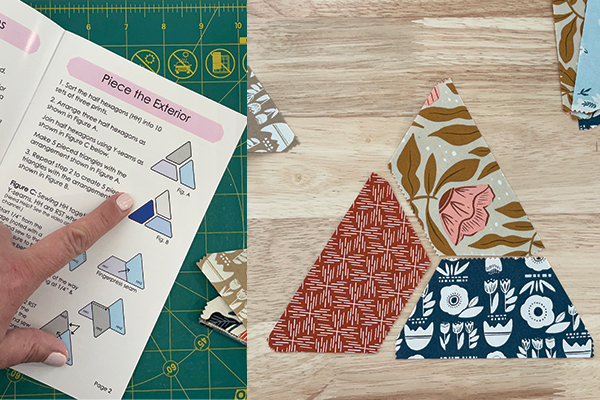 To sew them together, you will be using a Y-seam. Follow the directions in the pattern. The picture below shows the steps, or you can watch our video here.
