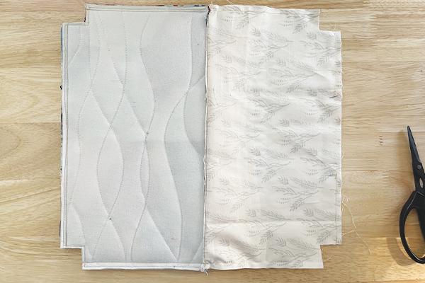 After quilting both panels, follow the directions in the panel to trim and shape the pouch front and exterior.
