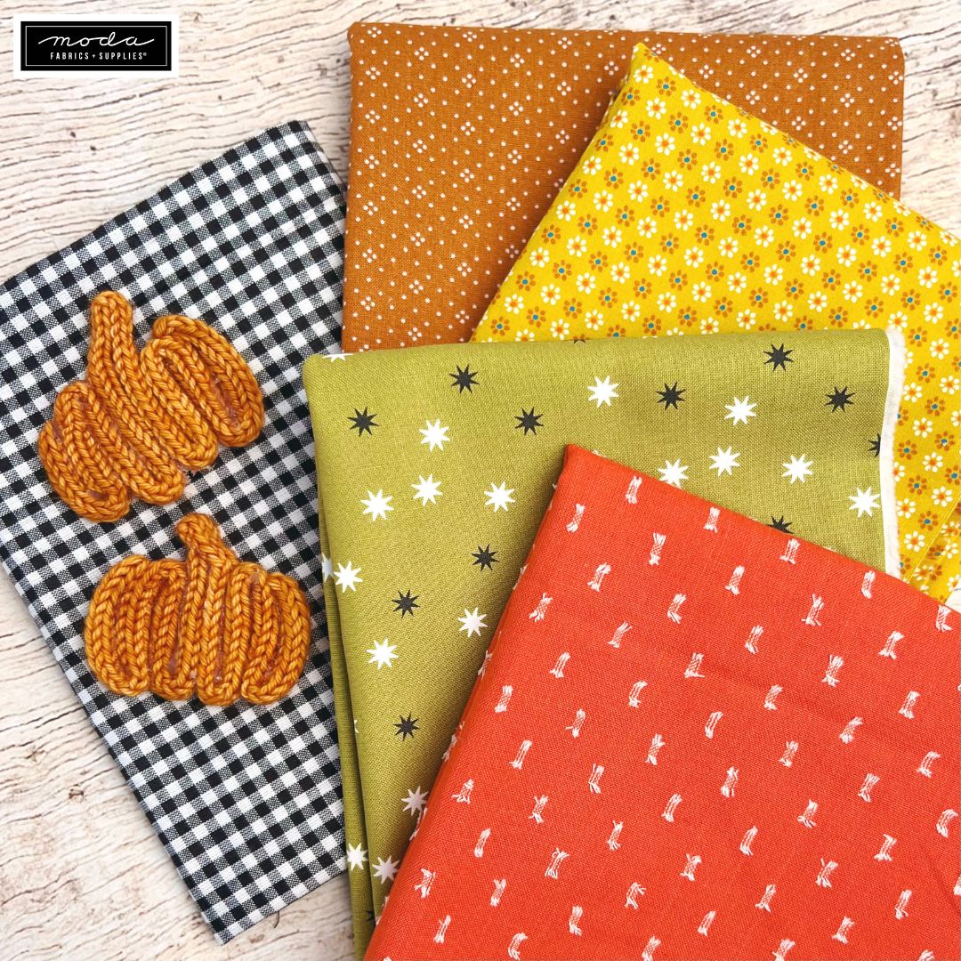 Patchwork fabrics: Sugar Maple RS4094-13 by Alexia Marcelle Abegg/Ruby Star Society; Warp & Weft Wovens RS4012-14 by Alexia Marcelle Abegg/Ruby Star Society; Hey Boo 5215-17 by Vanessa Goertzen/Lella Boutique; and Eyelet 20488-22 by Joanna Figueroa/Fig Tree & Co.