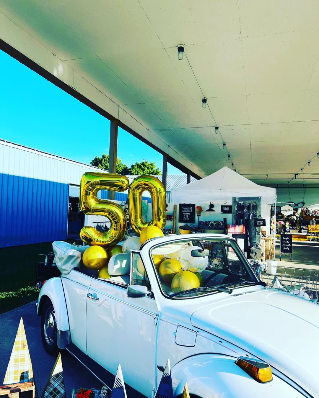 “I have always loved sewing and started as soon as my feet could hit the pedals. My mama did 25-30 craft shows a year when I was younger, making appliqued jumpers and quilted jackets, and I swore that I would never do them when I got older. Turns out that I have followed in her footsteps in more ways than one, but I only do three markets a year. What's fun about my markets is that I get to bring my vintage VW Bug, Pearl, with me as a prop in my booth. She turned 50 this year, so I had to spruce her up with some balloons for my last show. And yes, she still drives!”