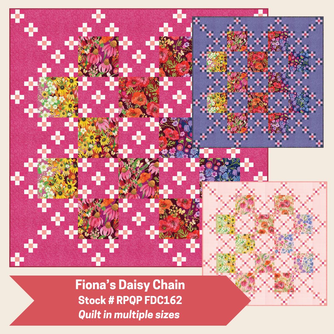 Fiona’s Daisy Chain is an Irish Chain quilt with a twist of the large squares using the wildflower print.