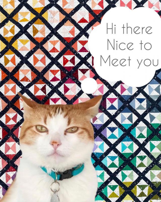 You may know Vanessa as a fabric designer (@vchristenson), but she's a lot of other things too! First gen, born in the US, first language was Spanish in the home, English later when she left the home. Been married for 25 years and together, she and her husband have 4 children (3 in college 23, 21, and 19. One still at home age 16)Her favorite thing to do is take pictures of her quilts and projects, it is the part she feels helps people really understand how quilts can bring comfort and joy. Her favorite quilt blocks include stars and flowers. So you’ll see those type of designs in most of her patterns. She’s also a certified life coach (@vchristenson.lifecoach) for perimenopausal/menopausal women who are looking to find more balance (less overwhelm and more joy!) so they can live their best lives now, and she’s working on getting her personal training and nutrition coach certification. She runs an accountability FB group for quilty women who are trying to get daily movement. She and her family have lived in the Midwest now for for over 12 years, can now use “Ope” correctly, know when to really head for the basement during a tornado siren, and can go outdoors in the spring with 40 degree weather thinking it’s “nice” out. And, of course, she spends most of her time sewing while her cat spends most of his time trying to "help".