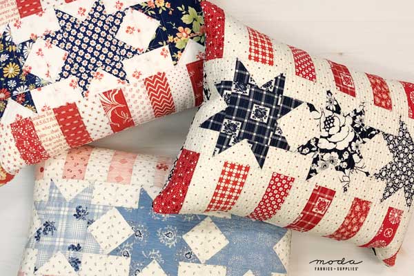 Because we're in Texas, folks here might think that refers to football. It doesn't. In this case, it means that the Fourth of July is twelve days away. And there is sewing to do! If you haven't started... this might be a bit ambitious. This glorious quilt is Portage Lake . The fabrics are from the...