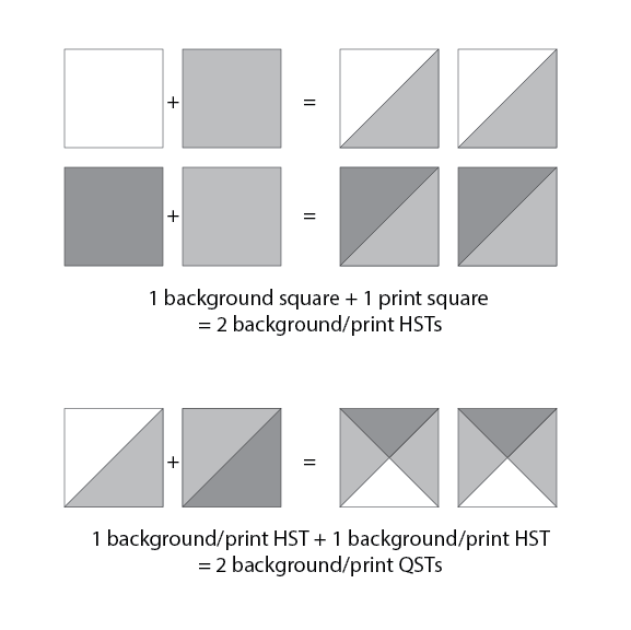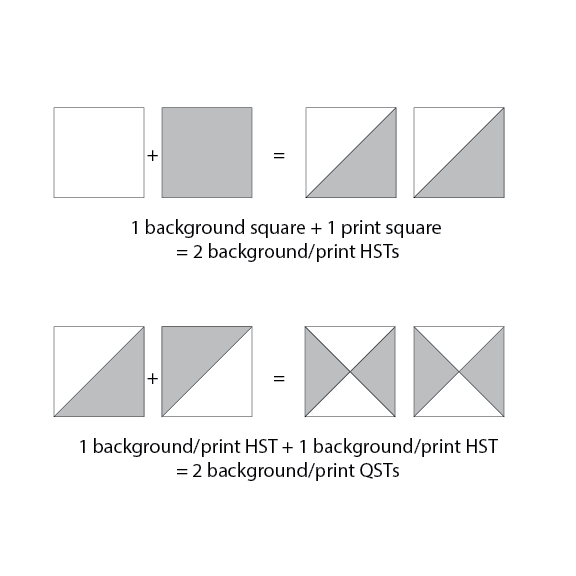 1 background square + 1 print square = 2 background/print HSTs