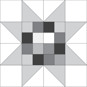You can find this week’s pattern here: BH5 – Group 2, Block 10 – 16-Patch Star by Alexia Abegg