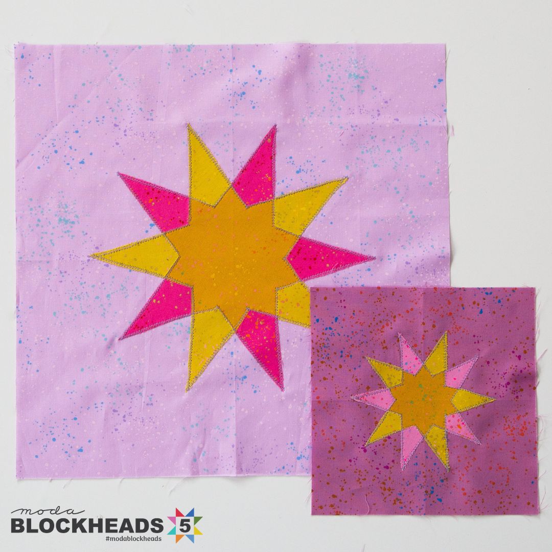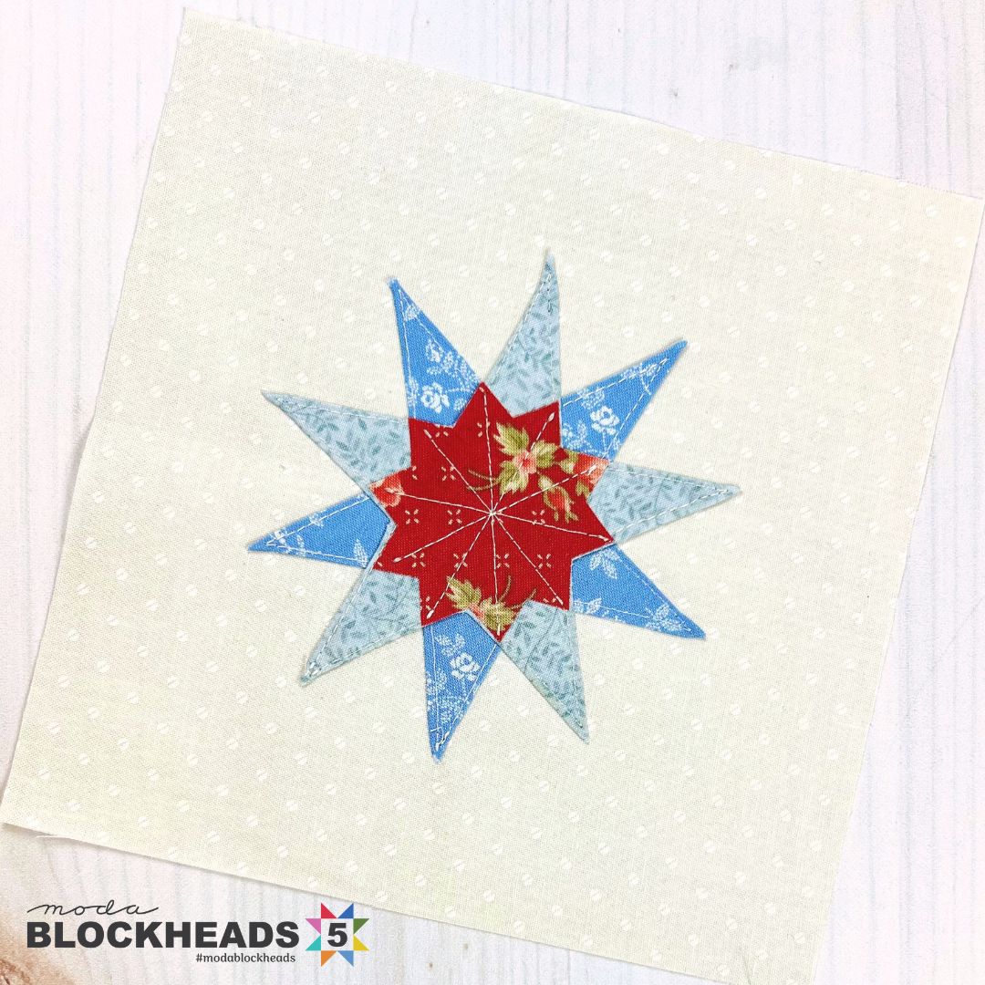So while we are introducing Moda Fabrics and United Notions to even more creative arts retailers, it’s fitting that this week’s Blockheads 5 block has true crossover appeal as an all-applique block!