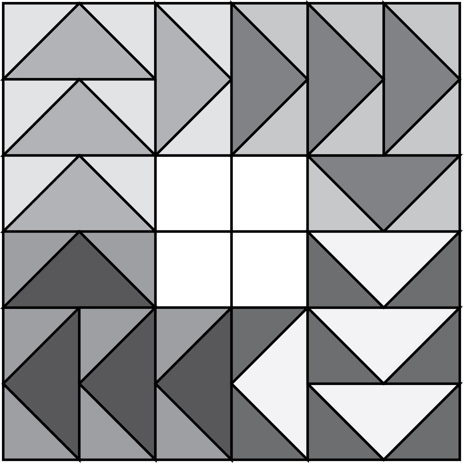 From there, the block is assembled just like a classic four-patch: sew the top row, sew the bottom row, press seams in opposite directions, then join the rows. Press the center seam open for a nice, flat finish.
