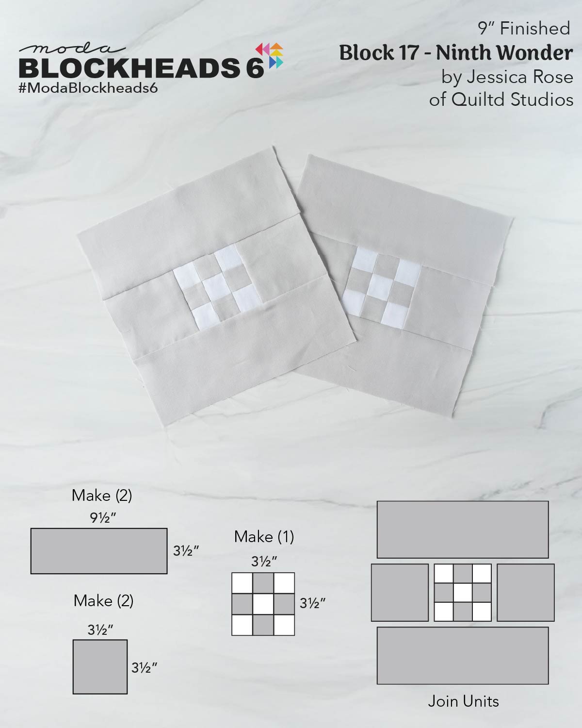 Welcome back, Blockheads! This week we’re stitching up Block 17: Ninth Wonder, designed by Jessica Rose of Quiltd Studios. Moda Friend Sarah Huechteman walks us through this classic yet versatile block, showing how simple piecing can create a design that’s both charming on its own and a perfect filler in larger quilt settings.