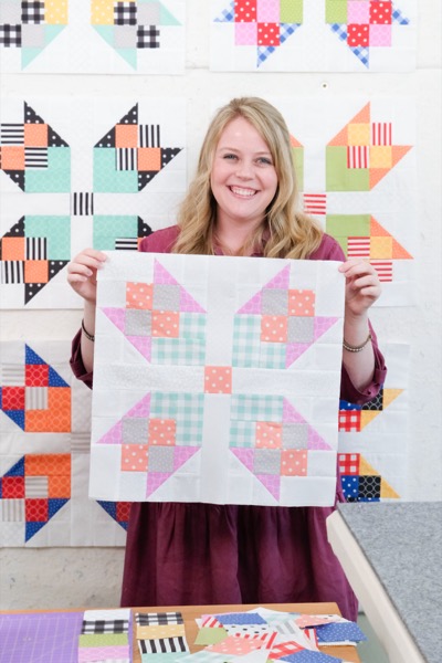 ^^ Moda’s own Brittany Clark Designer of the Star Flower 2024 Free Project Jelly Roll Pattern in Coriander Colors