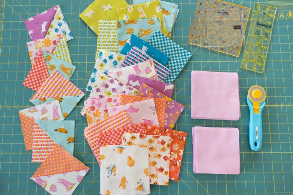 Repeat the process with (2) pairs of print squares to make (4) print/print HSTs.