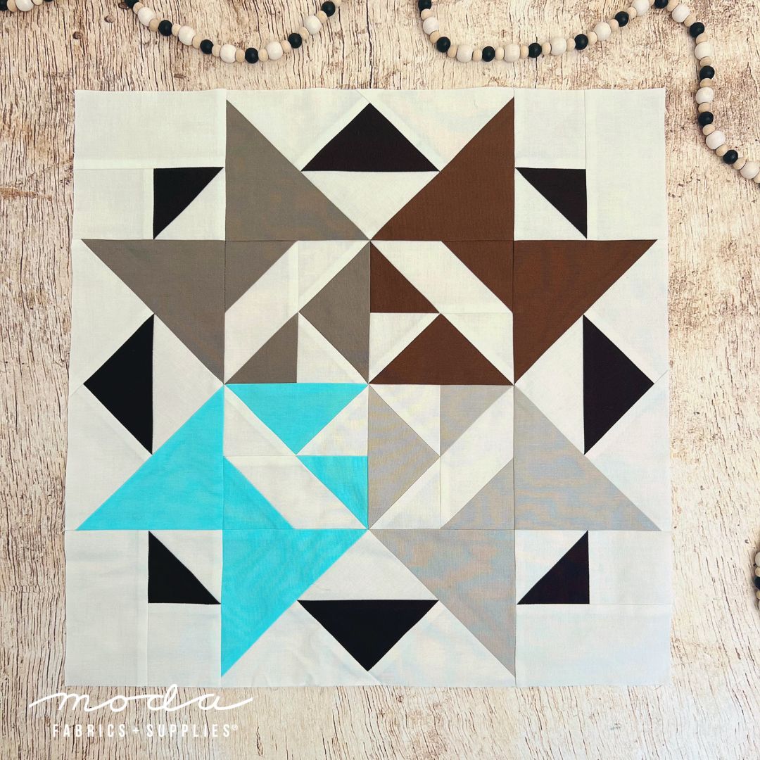 Chatsworth is just as stunning in solids as it is in prints! In my blog posts each month, I'll be sharing blocks made with a modern Southwest palette of sand, stone, turquoise, earth, and charcoal shades of Moda Bella Solids. Here's block 7: