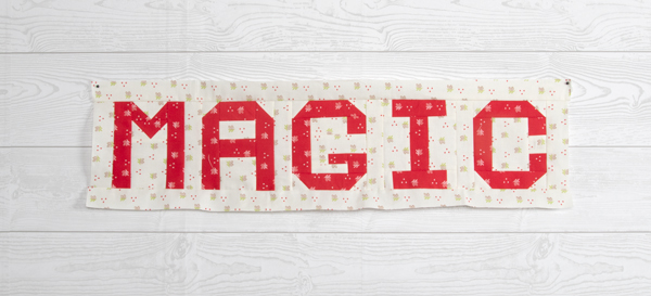 Merry 25th of September! This is our third check-in post for the Letters to Santa QAL. Read on for sashing/assembly instructions for a batch of 5 words from the main Moda quilt, 2 filler block patterns, and instructions to make a CHEER-ful pillow using elements from the QAL.