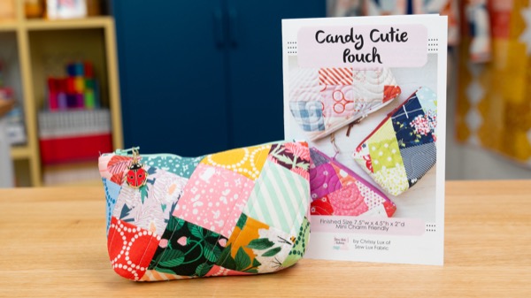 The Ziggy Pouch, paired with a new blingy zipper charm from Robin Pickens' Serena Shores line, is a favorite. We also love the Candy Cutie Pouch, which we made using Lizzie House's collection.