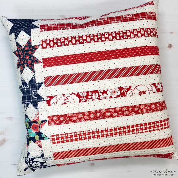 Make a patriotic pillow using any of the Stars & Stripes pillow patterns or your favorite Moda fabrics and post them to Instagram or Facebook so we can follow along with you! Be sure to tag us and include the hashtag #ModaPatrioticPillowParade.