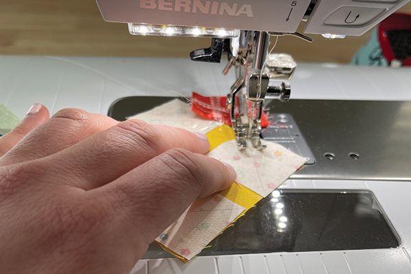 Press toward the corner and then trim the seam allowance. TIP: When sewing smaller units, pressing seams open can help reduce bulk.