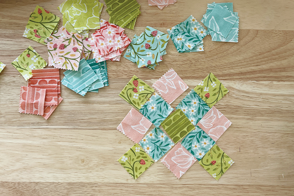 Plan out each block by layout out the squares and then sew them together in rows and then joining rows as directed in the pattern. You can press seams in opposite directions so they nest or you can press them open, if preferred.