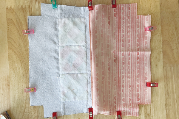 You'll follow the directions in the pattern to sash the blocks together and then add top and bottom borders to make the pouch exteriors for the front and back.