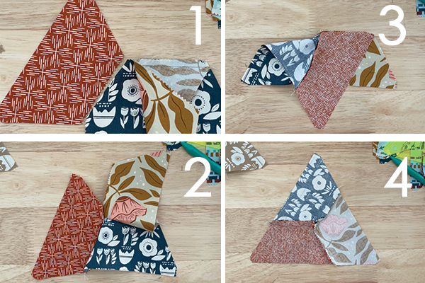 To sew them together, you will be using a Y-seam. Follow the directions in the pattern. The picture below shows the steps, or you can watch our video here.