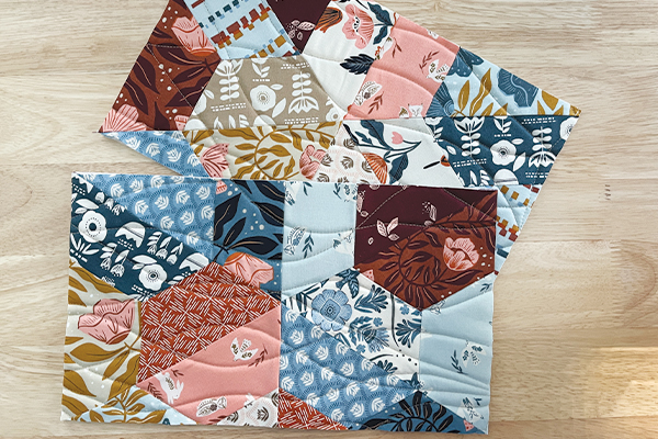 Make a panel of 2 rows of 5 blocks and then baste them to Soft & Stable or preferred batting. I like to use a spray baste, but you can use whatever method you prefer. You could also substitute fusible fleece or batting for the Soft & Stable, if you'd like.