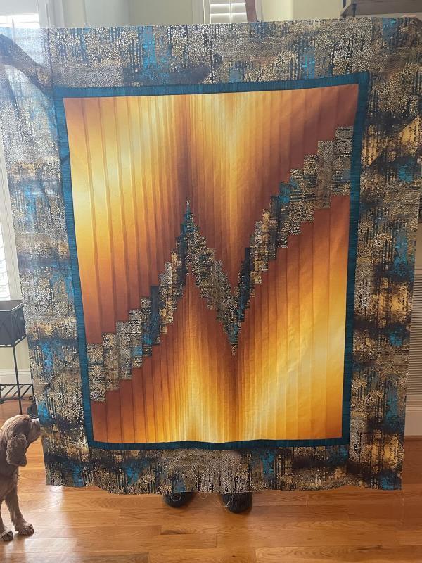 For Tracy, quilting is a family affair. Her husband, Armando, is such a huge fan and supporter of her work. “Through our marriage and travels together, Armando has acquired a knowledge of fabrics and even speaks quilting lingo,” says Tracy, adding, “and he recently purchased a pattern and fabric for his very first quilt!” She feels blessed that Armando can work remotely at times, allowing them to enjoy evenings together exploring the many beautiful towns and meeting the nice people throughout her region. Sometimes Honey, their beloved cocker spaniel, joins them too.