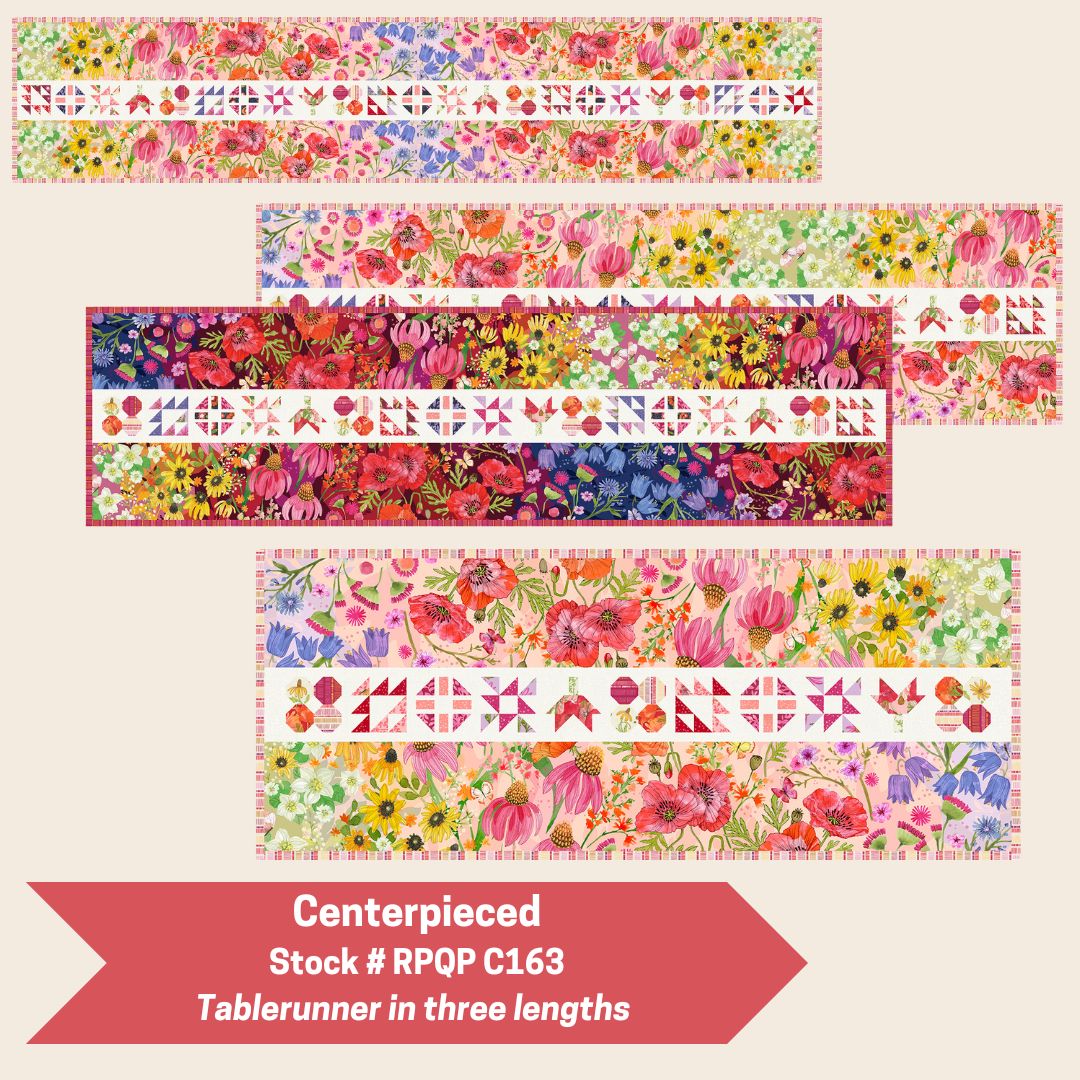 A charm pack table runner, Centerpieced, makes small 3” blocks with the colorful floral borders on each side.