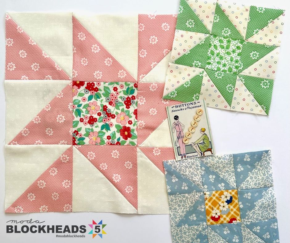 Our guest designer for Week 29 of Blockheads 5 is Alison Dale, a former quilt shop owner and Moda Marketing team member! Alison’s block, Maria’s Star, is named after her grandmother and niece, and it includes a technical feature that we have not yet tackled in our series! Download the Maria’s Star pattern now and let’s sew!